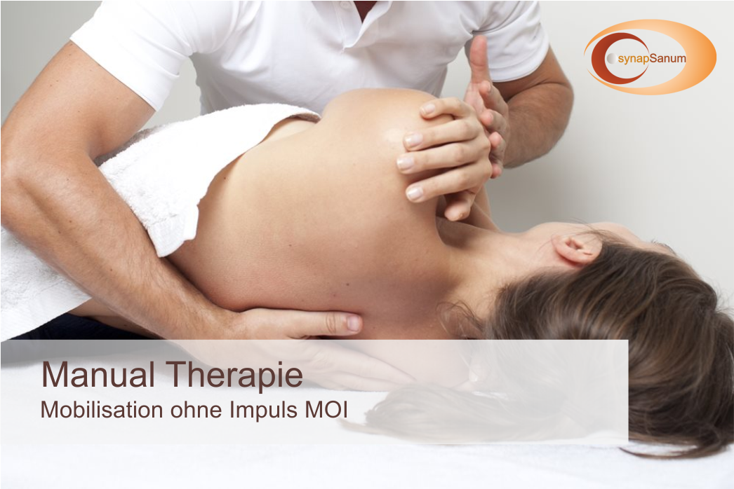 Die Manual Therapie dient in der Medizin der Behandlung von Funktionsstörungen des Bewegungsapparats (Gelenke, Muskeln und Nerven). Sie ist der von Therapeuten mit einer speziellen Weiterbildung durchgeführte Teil der Manuellen Medizin und beinhaltet Untersuchung und Behandlungstechniken. In alternativmedizinischen Behandlungsformen wird darüber hinaus auch die Behandlung von vielfältigen Beschwerden anderer Körperregionen und von generalisierten Befindungsstörungen als manuelle Therapie verstanden. Von der ärztlichen Manuellen Medizin unterscheidet sie sich darin, dass sie in der Schweiz keine Techniken mit Impuls (Manipulation) an der Wirbelsäule gemacht wird.Chronischer Schmerz, nimmt im Unterschied zum akuten Schmerz mit der Zeit die Form eines eigenen Krankheitsbildes an. Die Ursache der Schmerzen lässt sich meist nicht mehr feststellen oder besteht nicht mehr, so dass eine ursächliche Behandlung zumeist nicht möglich ist. Die Nerven senden anhaltend Schmerzimpulse an das Gehirn, obwohl kein Reiz mehr vorhanden ist.